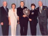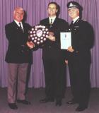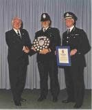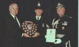 Me with the Chief Constable of Devon & Cornwall Sir John Evans presenting my Charity Shield to PC Bob Bigland of Newton Abbot for outstanding work to help young people in his area 2001